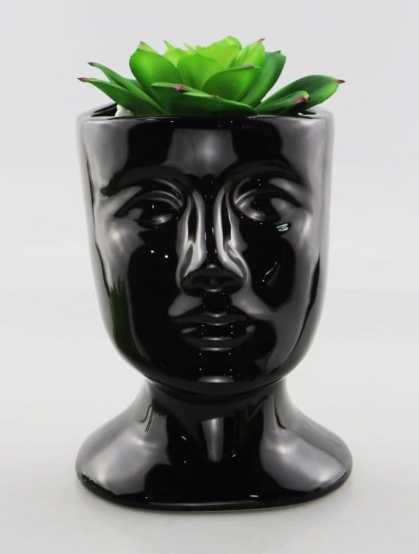 Elegancka donica ceramiczna w kształcie ludzkiej twarzy stworzy nowoczesny dodatek na Twoim biurku.