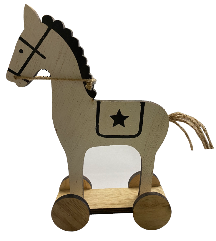 Drewniana Figurka Konia Konik Stojący Na Kołach
