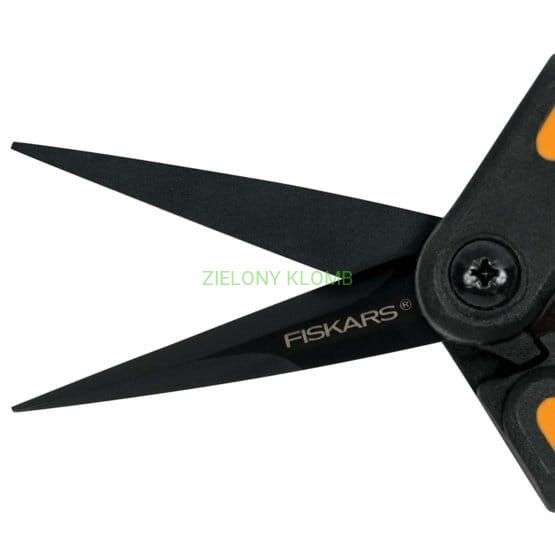 Precyzyjne ostrza nożyczek Fiskars pokryte powłoką PTFE Fiskars są idealne do stymulowania zdrowego wzrostu roślin i kwiatów, idealne do ich kształtowania, do powtarzalnych i skomplikowanych cięć. Precyzyjne ostrza Micro-Tip tną aż do samego czubka, zapewniając czyste, zdrowe cięcie w ciasnych przestrzeniach, podczas gdy w pełni utwardzone ostrza ze stali nierdzewnej z precyzyjnie oszlifowaną krawędzią pozostają ostre – nawet podczas intensywnego użytkowania. Ostrza wzmocnione są specjalną powłoką zapobiegającą przywieraniu, która pomaga zmniejszyć zacinanie się i gromadzenie żywicy podczas cięcia lepkich roślin. Nożyczki posiadają sprężynę Easy Action™, która delikatnie otwiera ostrza po każdym cięciu, zmniejszając zmęczenie dłoni w wyniku powtarzających się cięć, co czyni je szczególnie przydatnymi dla ogrodników z ograniczoną siłą ręki. Wygodna rękojeść Softgrip sprawia, że nożyczki są wygodnei łatwe w użyciu, a blokada i osłona ostrzy zapewniają bezpieczny transport i przechowywanie.